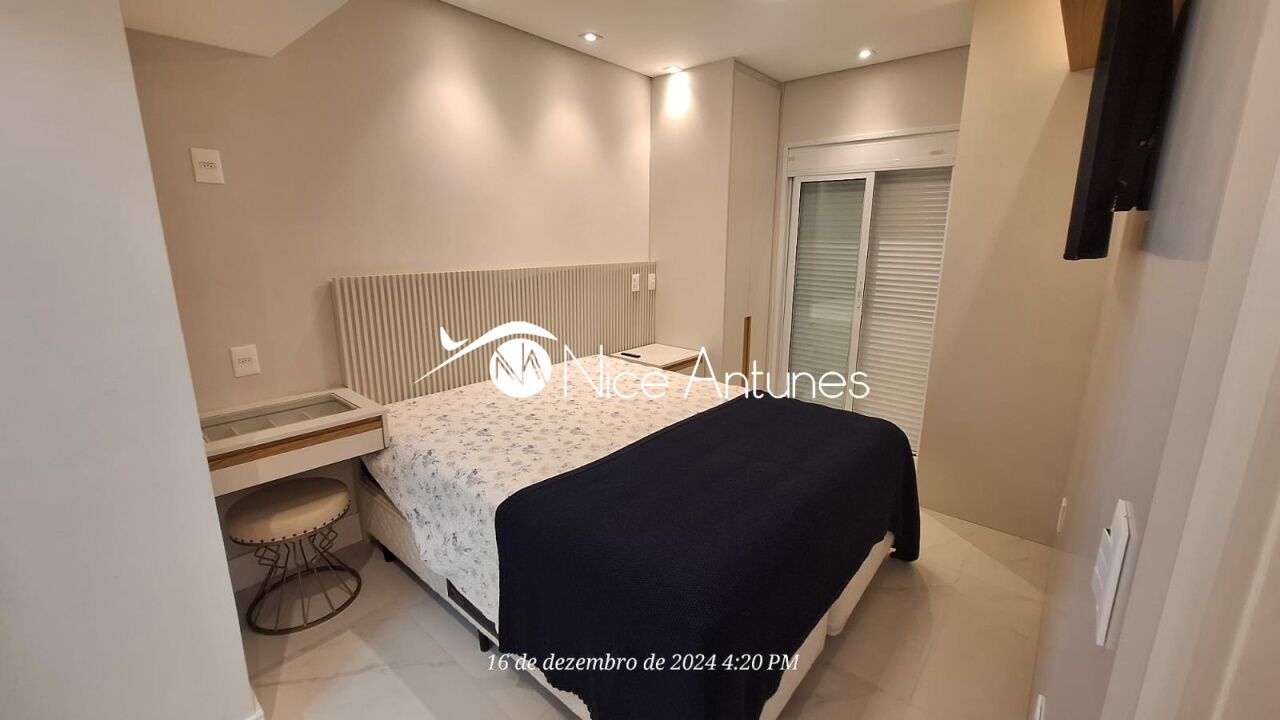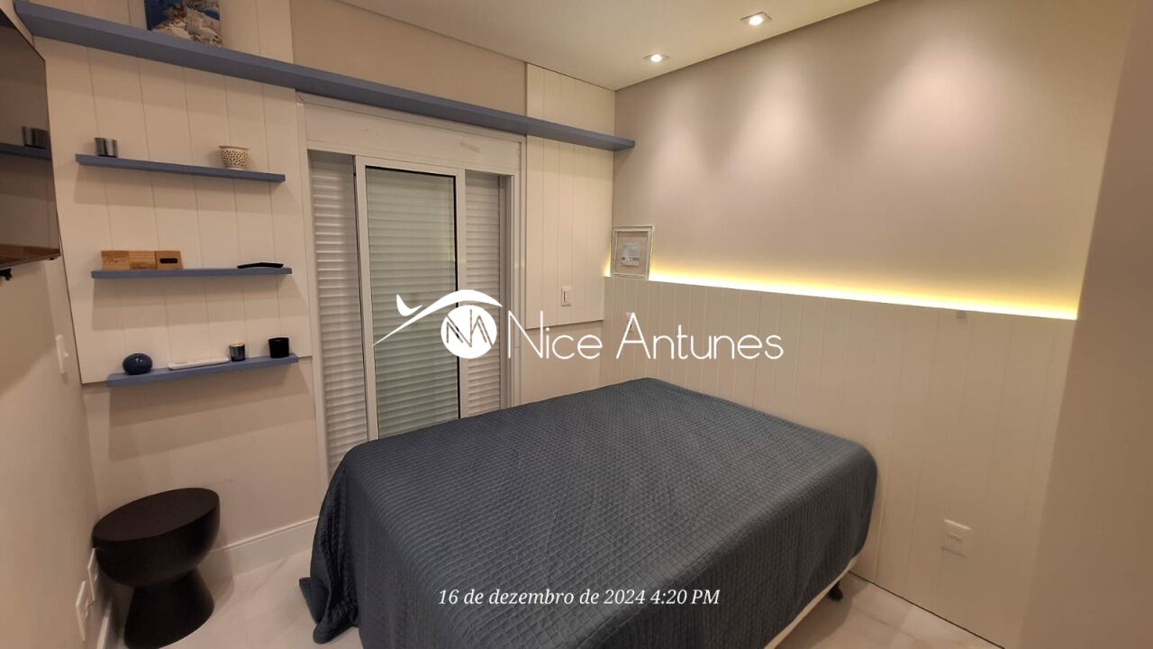 Apartamento estiloso , com projeto de design interior sofisticado , mobiliado e decorado, com 3 dormitórios, sendo 1 suíte, com ar-condicionado nos quartos e sala. Possui uma ampla varanda envidraçada com abertura total dos vidros, churrasqueira e área gourmet. A cozinha totalmente equipada, incluindo geladeira, micro-ondas e filtro de água Europa. Área de serviço ,maquina de lavar , tanque e varal .Serviço completo de praia (montagem de cadeiras e guarda-sóis), área de lazer Piscinas aquecidas (adulto e infantil),Playground, salão de jogos e brinquedoteca com TV,Academia completa .