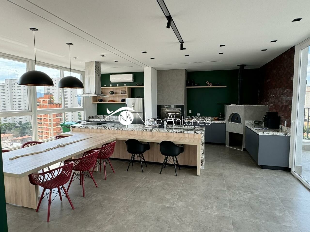 O apartamento contem ar condicionado,,geladeira ,fogao, microondas,filtro.Tv 55 polegadas,sofa tapetee mesa e cadeiras.