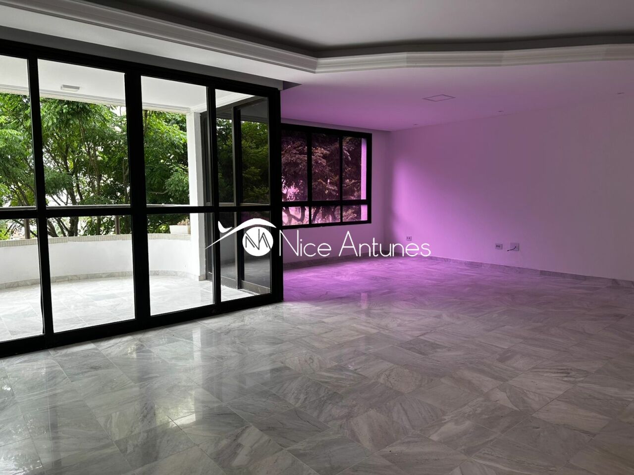 Sala para dois ambientes com varanda com vista para rua.